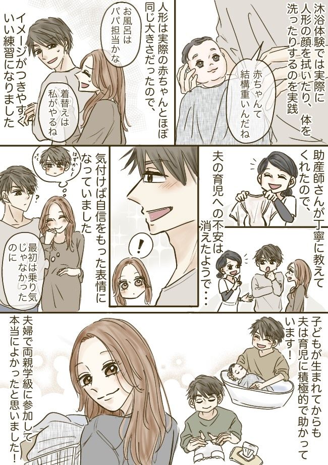 実際に子どもが生まれてからも、夫は自らすすんで沐浴してくれたり、おむつ替えをしてくれたりと、助かっています。両親学級での体験から夫の意識が変わり、参加してよかったなと心から思いました。