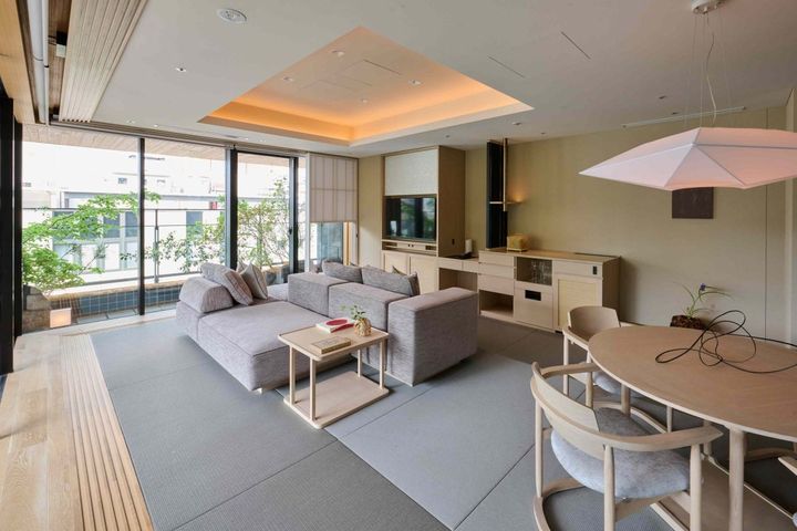 客室は、花木の庭と季節の草花がしつらえられ、日本の美意識が息づくインテリア。日本の香りと葉の音を感じつつ、都心に身を置きながらも、時間の流れが緩やかにほどけていくような、贅沢なひとときを過ごせます。