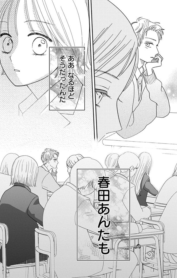でも、りおが気になっている男子・春田だけは別。春田はみんなが香月に注目している時も、りおのことを気にかけてくれるのです。些細な変化にも気づいてくれる春田はりおにとって「透明な自分を見つけてくれる」存在になっていました。
