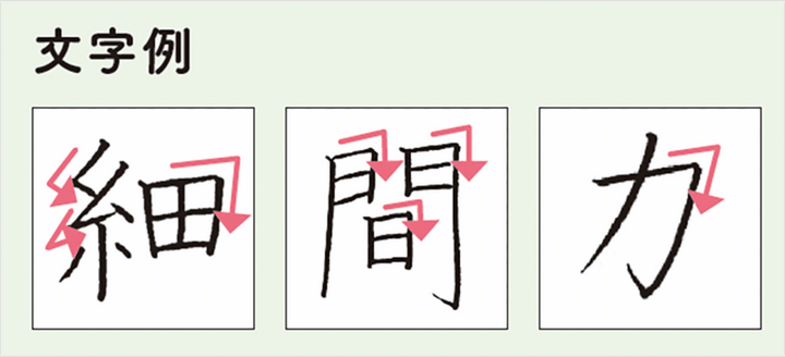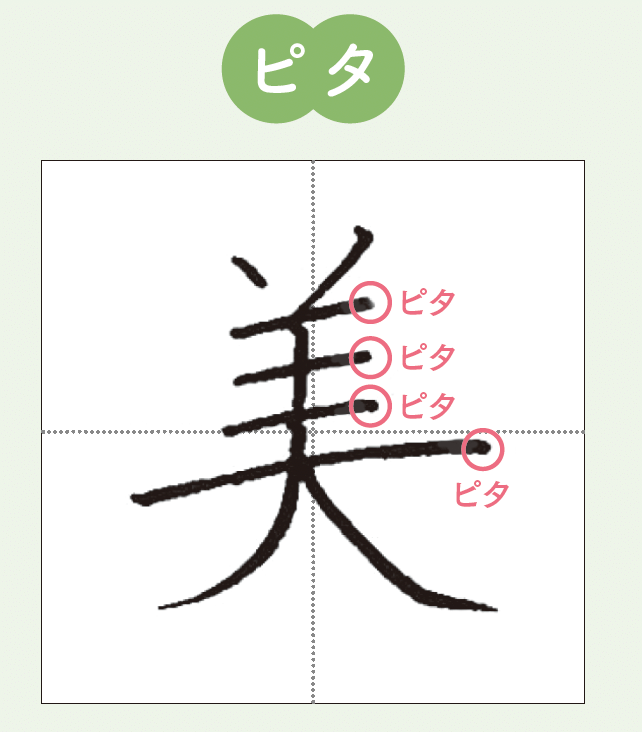 「ピタ」としっかり止めるだけで、安定感が生まれ、丁寧な字に見えます。