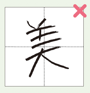 2文字以上書くときは、文字の中心を〝串刺し〟するようなイメージで、そろえて書きます。
