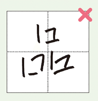 人は線と線の間も無意識に見ているため、隙間がふぞろいだと字形が乱れて見えます。