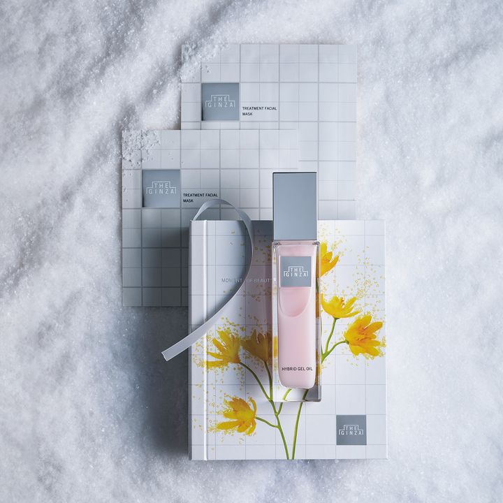 リンデンの花が描かれたアートブックのようなボックスに、アイコン的美容液「ザ・ギンザ ハイブリッドジェルオイルn」現品と、9月発売の「ザ・ギンザ トリートメントフェイシャルマスク n」2枚をセット。透明感とツヤに満ちた肌に整えてくれるから、ホリデーのおこもり集中美容に最適。ザ・ギンザ ホリデーコレクション ハイブリッドジェルオイル コフレ ¥29,700(ザ・ギンザ)
