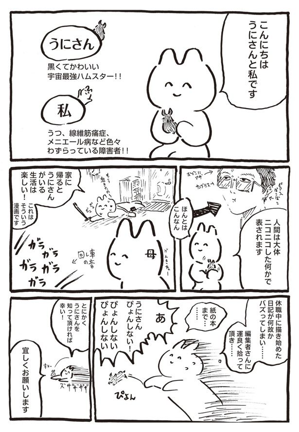 うつ、線維筋痛症、メニエール病など、様々な病を患い、休職をしていた漫画家・松村生活さん。「ペットを飼えば生きる理由になるかな?」。そんな切実な思いをきっかけに始まったのが、ハムスターの「うにさん」との生活でした。