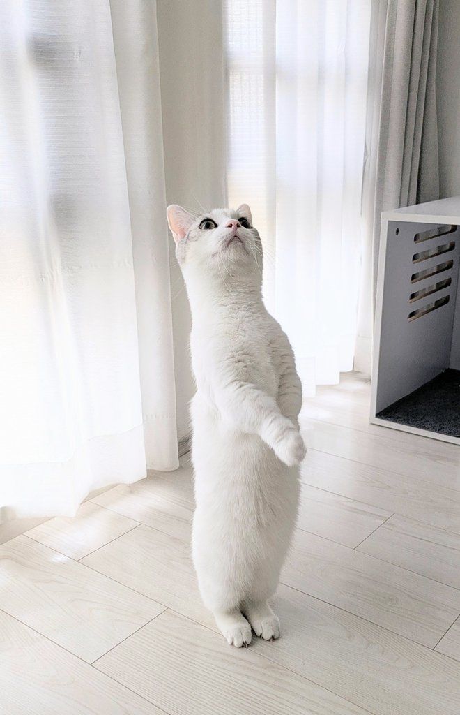 後ろ足で立ち上がったネコ。 背筋を伸ばし、猫背をやめたその立ち姿が話題となっています!