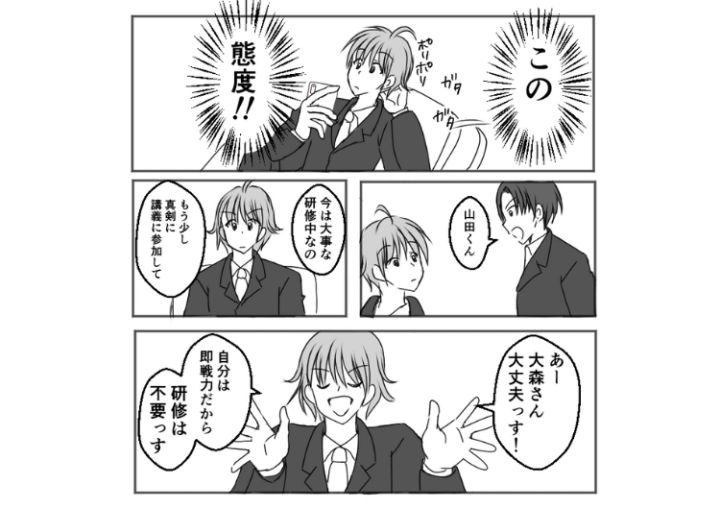 衝撃のエピソードを漫画化!今回は自分の能力を過信して研修を一切聞かない問題新入社員のお話をご紹介します。