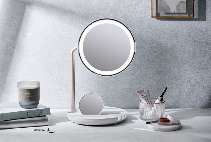 メイクの微妙な加減を映す、自然光に近いライト付きミラー