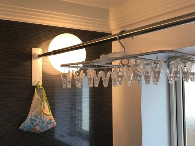 お風呂の好きな位置にマグネットで簡単に取り付けできる便利なフック付きの物干し竿ホルダー。賃貸でもマグネットさえつけばお風呂に物干しを設置できちゃいます!