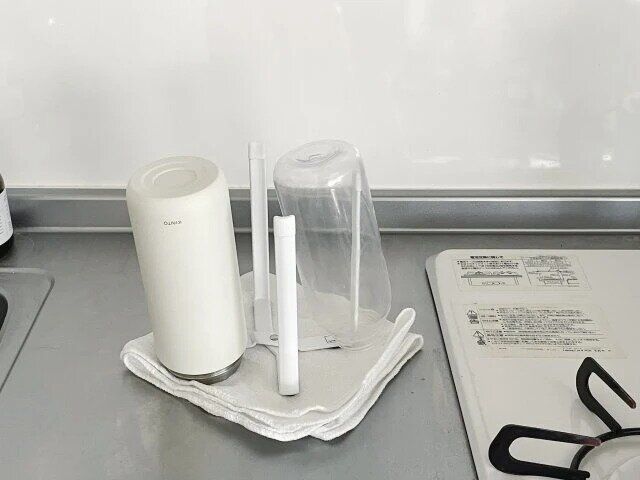 そのまま置いておくと乾きにくい水筒やグラス、鍋蓋を乾かすときにも便利!ホルダーの開き具合が用途に合わせて調整できるので、ジップロックなどの保存袋に汁気の多いものを入れるときにも重宝します。
