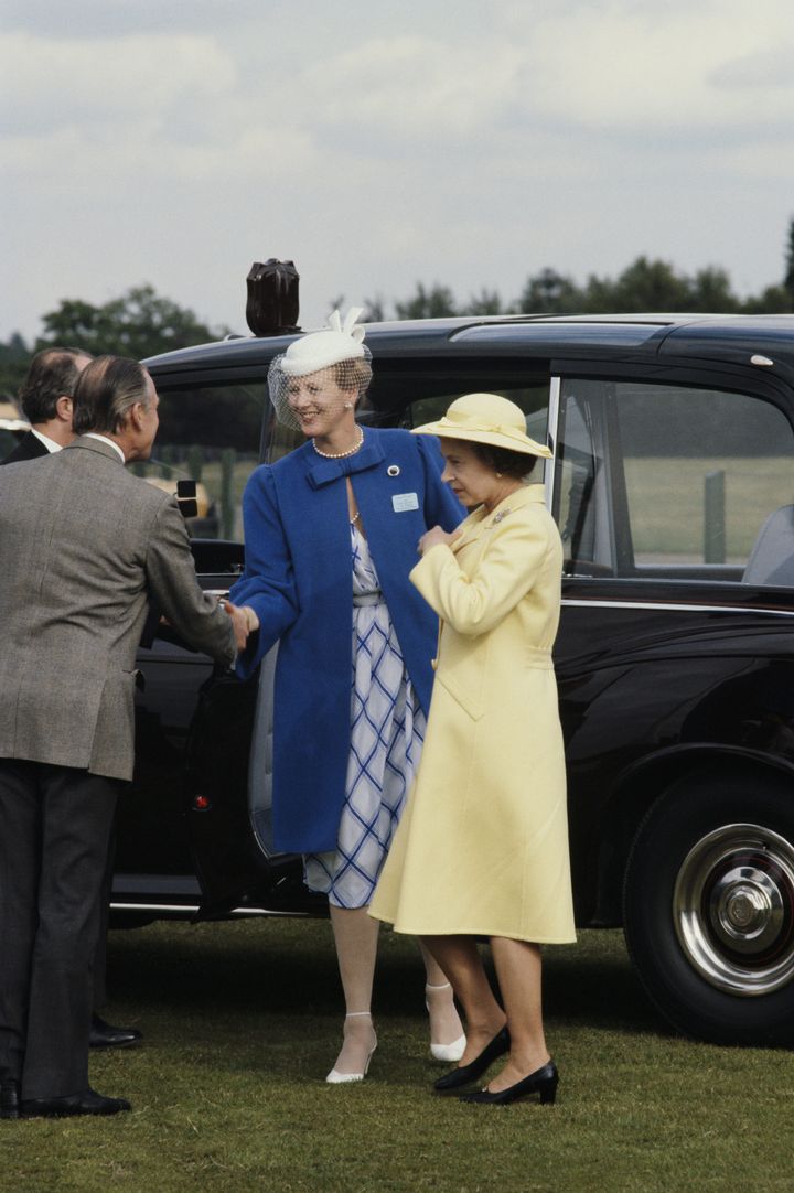 14歳の歳の差がありながらも親戚であり、ともに女性君主という共通から長年親しい間柄であった二人。写真は1980年、ウィンザーのポロクラブで撮影されたもの。発色の美しいブルーとイエローのコートに、帽子を合わせたエレガントなスタイルです。