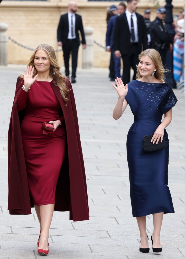 ともに王位継承順位第1位で、未来の女性君主という共通点がある二人の王女。 2025年10月、ルクセンブルク大公アンリの退位式に出席した際には、ワインレッドとネイビーの上品&エレガントな装いで。ポージングまでも見事にリンクしています。