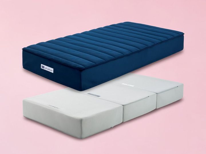 寝返りしやすく体形に合わせてカスタマイズ。表裏で硬さが異なる3つのブロックを組み合わせ、自分に合ったカスタマイズが可能。¥264,000〜/エアウィーヴ