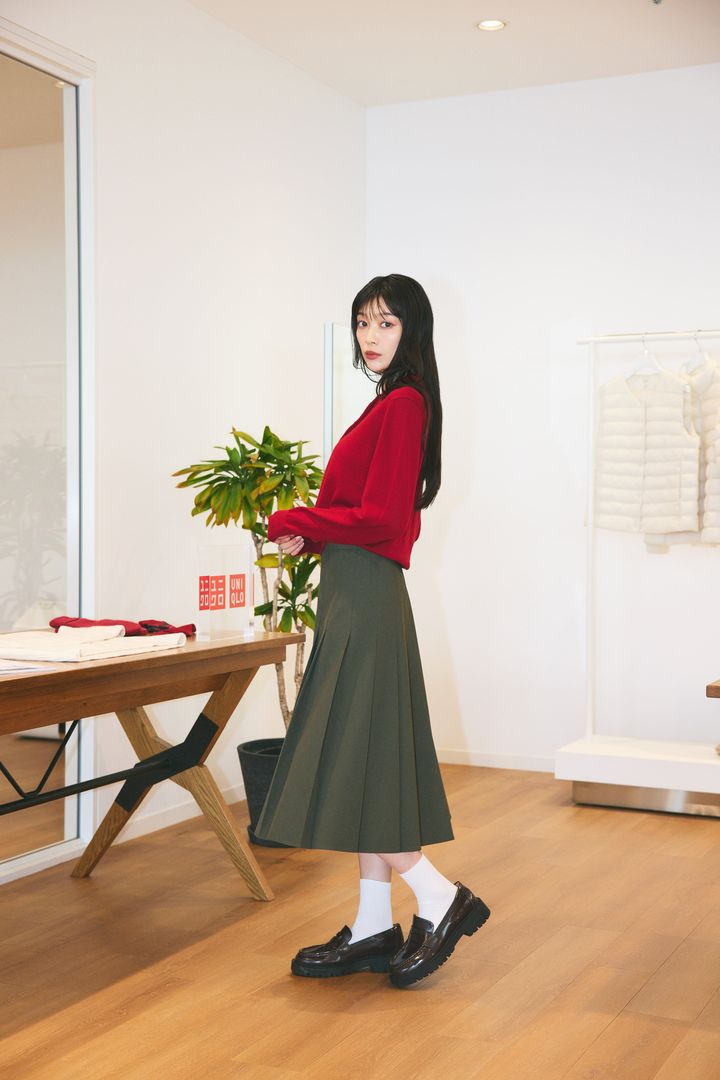 3. 【UNIQLO(ユニクロ)】上品なプリーツスカートで重くなりがちな冬服を軽やかに♡甘くなりすぎない大人女子の必須アイテム【今週の買い!着回しSHOW】