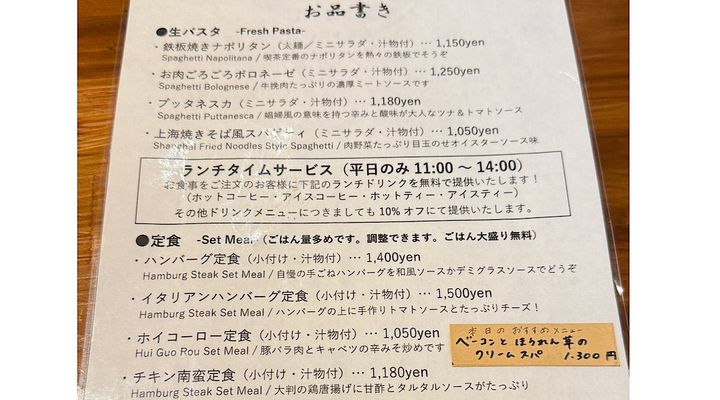★上海焼きそば風スパゲティ(ミニサラダ・汁物付)1050円