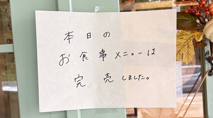 14:00頃行ったら、「本日のお食事メニューは完売しました」の紙が…。