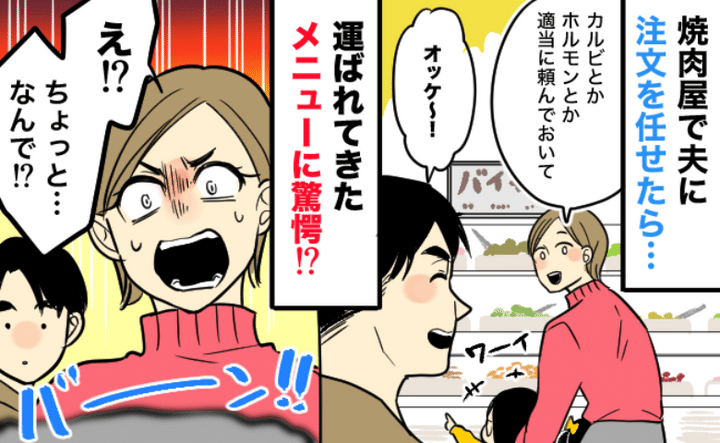びっくりして「カルビとホルモンは?」と聞くと、夫は「とりあえずお店のおすすめから頼んでおいたよ」と……。