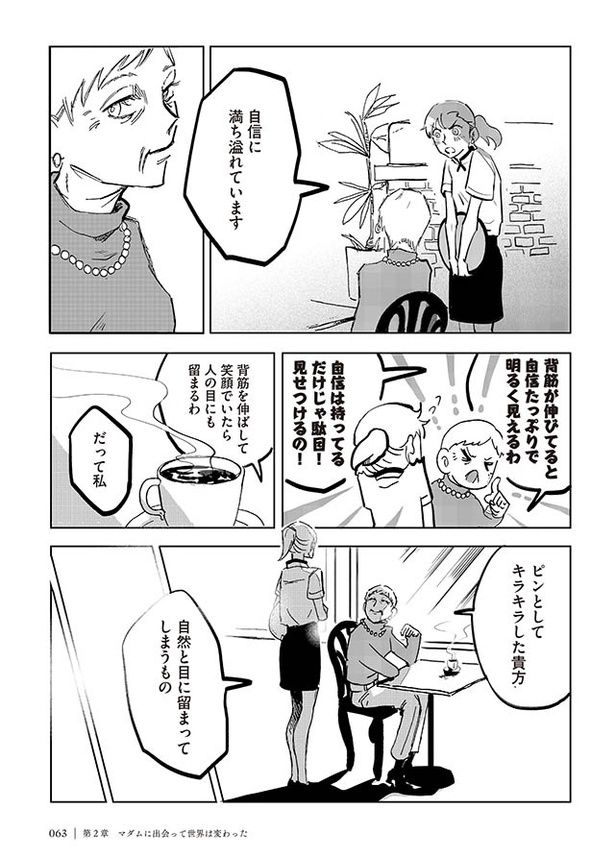 喫茶店でバイトをしている女子大生が仕事中に出会ったのは、70歳の気品溢れるマダム。短く整えられた白髪に、芯のある優しい声、ピンと伸びた背筋、そして身に付ける洋服はいつもオシャレで…。お店に来るマダムを見るたびにときめくこの感情は…恋? お金も時間も夢もない中途半端な女子大生が、心から憧れる女性との出会いを通して成長していく――。人生に彩りを与えてくれる素敵な考え方が散りばめられた『マダムが教えてくれたこと』をお楽しみください!
