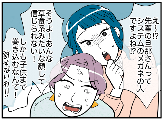 矢部マリアが夫と関係をもった目的はなんなのかー。情報を整理しようと思ったが、今回の一件について夫がやたら被害者ヅラをするため主人公の怒りが爆発。この日の話し合いは終了となった…