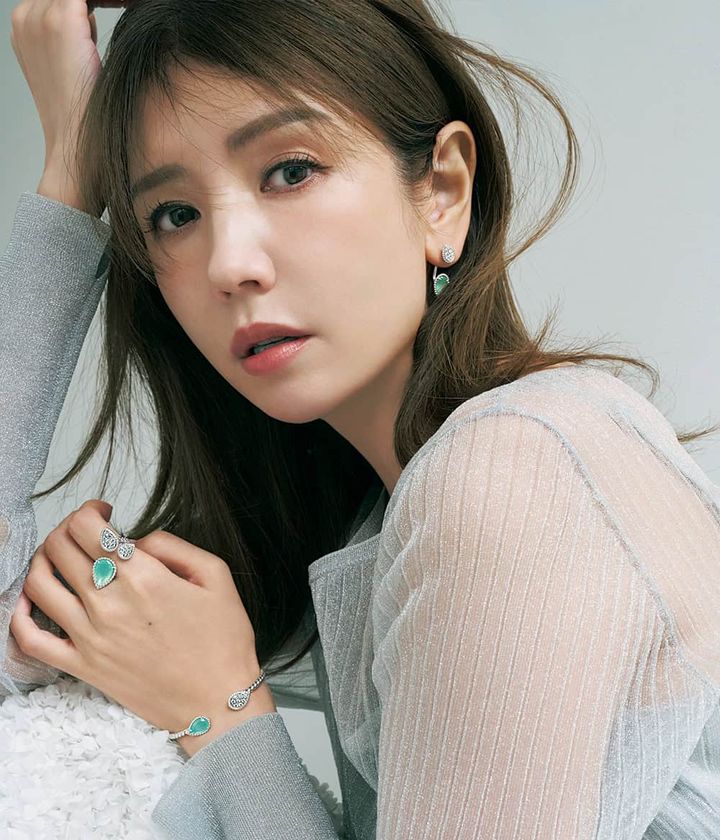 <人物>風の時代、挑戦を後押ししてくれるアクアプレーズ、蟹座時代お守りジュエリーとなるドロップモチーフと、正に’26年は上半期の気運を象徴するようなジュエリー。ジュエリー、すべて「セルパンボエム」 リング〈WG×アクアプレーズ×DIA〉¥1,623,600バングル〈WG×アクアプレーズ×DIA〉¥1,254,000シングルピアス〈WG×アクアプレーズ×DIA〉¥649,000(すべてブシュロン/ブシュロン クライアントサービス)ニット¥19,800(カデュネ)スカート¥64,900(ツル バイ マリコ オイカワ)