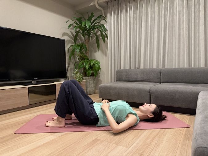STEP2:お腹の横と付け根をほぐすやさしいストレッチ