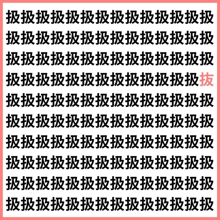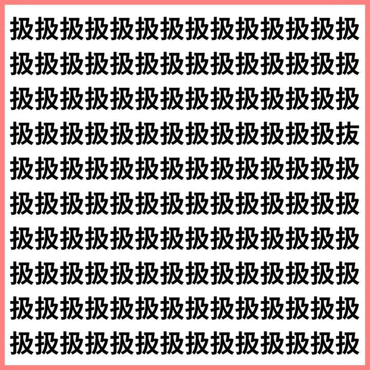 見抜ける?扱の群れに紛れた抜。【1文字だけ違う】漢字間違い探しで脳トレ、何秒で見つかる?