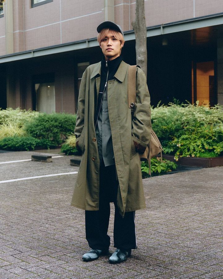 3. 【スナップ】キャップ、インナー、シューズのさりげないシンクロ。スポーティーすぎないトラックスーツの着こなし好例