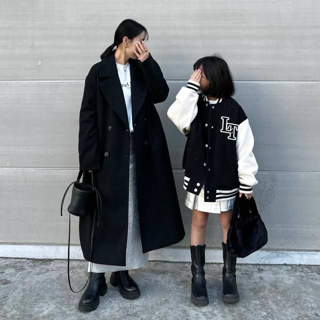 モード&辛口ファッション派のママなら、やっぱりブラックでスタイリングを引き締めるのが可愛い! 重く見えがちなブラックコーデですが、ロングコートのインナーをホワイト系でまとめてIラインを意識するとスタイルアップも叶います。