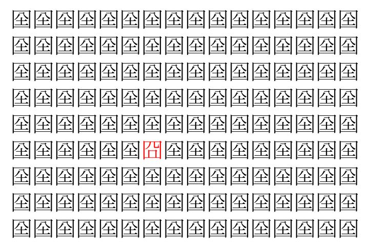 2. 【脳トレ】「囶」の中に紛れて1つ違う文字がある!?あなたは何秒で探し出せるかな??【違う文字を探せ!】