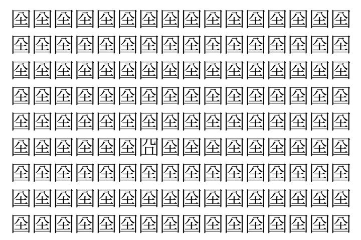 【脳トレ】「囶」の中に紛れて1つ違う文字がある!?あなたは何秒で探し出せるかな??【違う文字を探せ!】