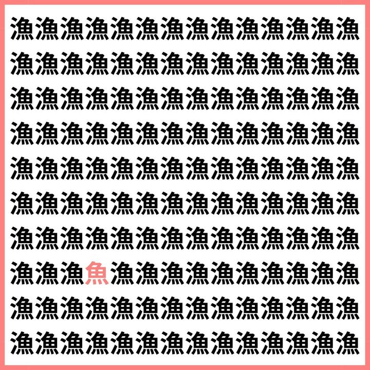 “漁”だらけの画面に1つだけ【1文字だけ違う】漢字間違い探しで脳トレ、何秒で見つかる?