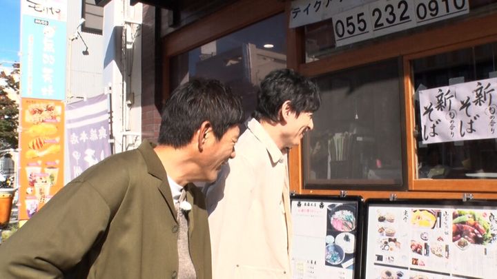 少食おじさんの博多華丸・大吉が、ただただ食べたい丼か麺を探す街ブラ番組『華丸丼と大吉麺』(ABCテレビ)。23日(日)は、山梨県の甲府編をお届けする。甲府駅前で、華大を上から睨みつけるかのような武田信玄像を見て、華丸が「風なのか林なのか、火なのか山なのか、問われそうですね」とコメント。すると大吉が信玄像に頭を下げながら、「すいません、我々は【丼】か【麺】です」と番組の企画をしっかり伝える。
