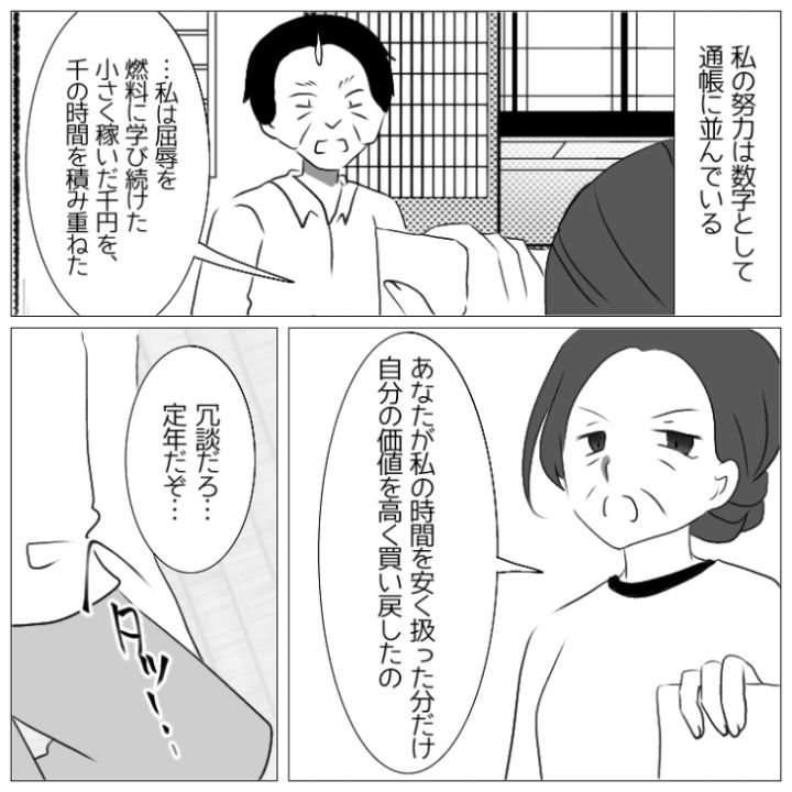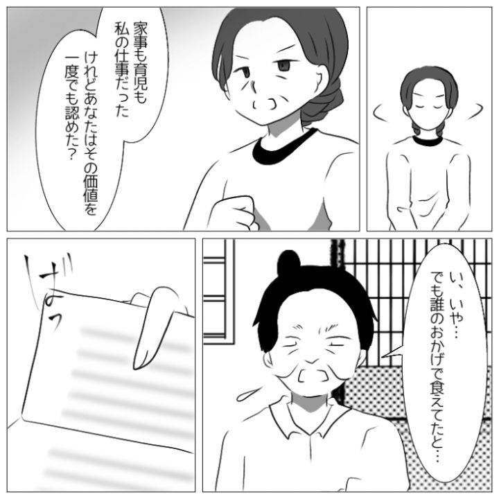「誰のおかげで飯が食えてるのか考えろ」ギリギリの生活費しか渡さないのに文句ばかりのモラハラ夫!長年我慢して、夫の定年退職の日にあるものを突きつけて絶望させた話