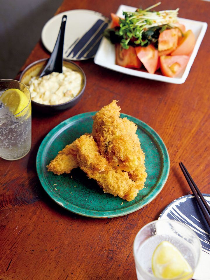 11月23日は「かきの日」。そこで、行列の絶えない定食屋・菱田屋流、かきを2個合わせて豪快にフライにした一皿をご紹介します。