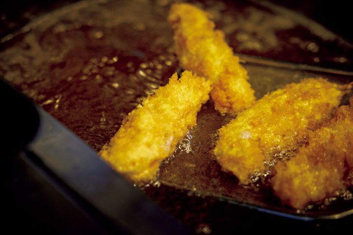 バッタ ー液をしっかりからめれば身が縮みにくくうまみも逃げない!