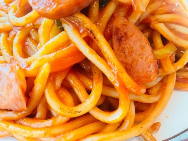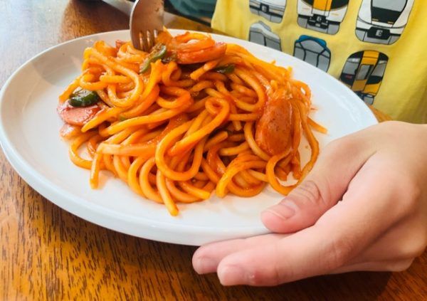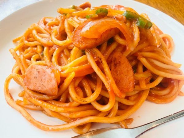 今回いただいたのはこちら。ランチメニューを楽しみました。まずはナポリタン。