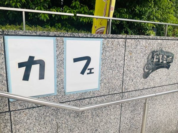 カフェという文字が大きくてかなり気になりますが、そのまま進んでいくと、緑がいっぱいの気持ちのいいカフェが見えてきます。