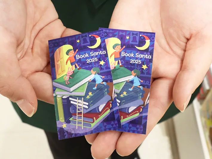 2025年11月、仕事を終えて帰宅する途中、筆者は会社の最寄り駅近くの書店で『ブックサンタ 2025』と書かれた看板を発見しました。