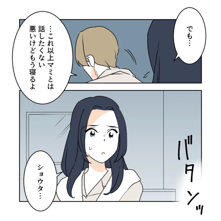 「でも・・・」と言いかけた私の言葉を遮るように、ショウタはそっと背を向けると、「これ以上マミとは話したくない、悪いけどもう寝るよ」と言い、そのまま寝室へと消えていきました。
