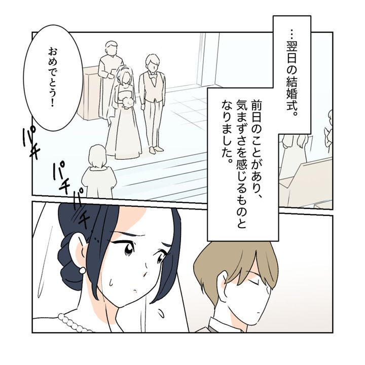 翌日の結婚式。せっかく計画して沖縄まで来たのに、前日のことがあり、気まずさを感じるものとなりました。人生の一大イベントなのに、突然現れた義父のせいで苦い思い出になってしまうなんて・・・私は複雑な気持ちを抱えたまま式を終えました。