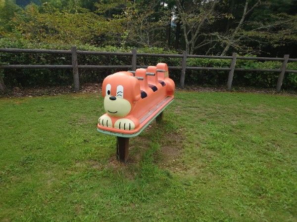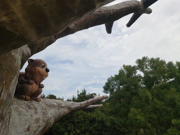 目に飛び込んできたのは、大きな木の遊具!?とても可愛いのです!子どもと撮影すると映える!!と親の目が光ります!木の上には動物のキャラが乗っています。なんだかレトロでかわいい。