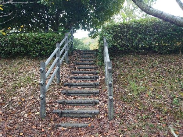 駐車場を下り歩いていくと、階段が見えます。ここを登ると公園があります。