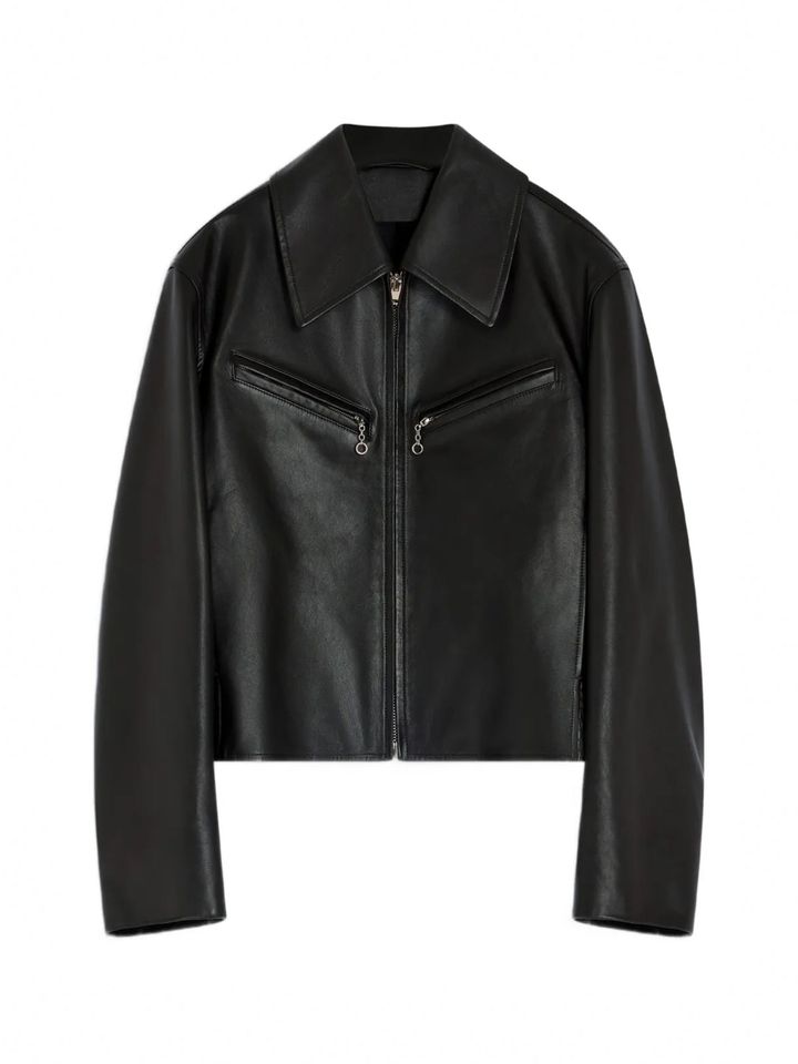 とはいえ、この“レザーの熱”はサンローランだけではない。今季は多くのブランドが、それぞれの美学でレザーアウターを刷新し、スタイルの幅をより豊かに広げている。構築的なショルダー、削ぎ落とされたミニマルなボンバージャケット、さらにはジップカラーや比翼仕立てといった“ひと癖シルエット”まで。ここ数年続く人気をベースに、2025-26年秋冬はレザーの表現が一段とアップデートされたシーズンになっている。