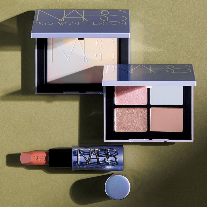 デザイナー イリス ヴァン ヘルペンとコラボ。NARS ライトリフレクティング プリズマティックパウダー 05082 ¥6,380※10月24日発売 、同 クワッドアイシャドー 05079 ¥7,700※11月21日発売、同 エクスプリシット リップスティック 829A ¥5,280※10月24日発売(NARS JAPAN)