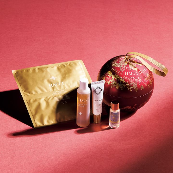人気ボディウォッシュ「BEE HUG」にシートマスク、クレンジング、ハンドクリームがついたお得なキット。オーナメント イヴ ¥5,940※10月24日発売(HACCI)