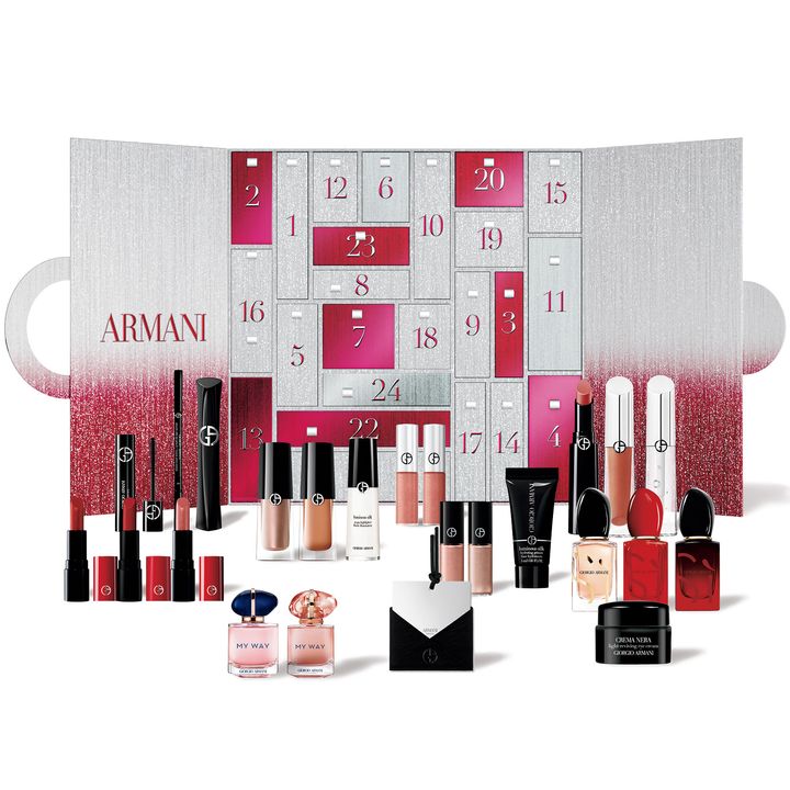 今年発売のチーク「ルミナス シルク ティント シャイン」をはじめ現品9品や日本未発売アイテムを含むラインナップ。アドベント カレンダー¥74,800(アルマーニ ビューティ)