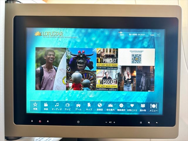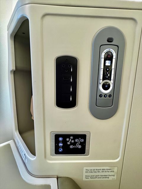 ハノイ発成田行きの場合、深夜に現地を出発して午前7時ごろ到着するので、到着する前に軽くメイクするなど身支度を整えたいときも、このプライベート感ある座席が助かるなあと実感しました。