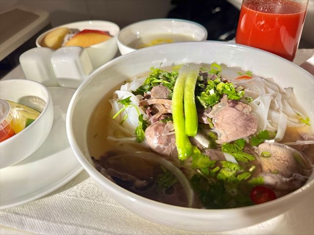 3. 【ベトナム航空ビジネスクラス搭乗記】機内食のフォーは必食!フルフラットで快適すぎる空の旅