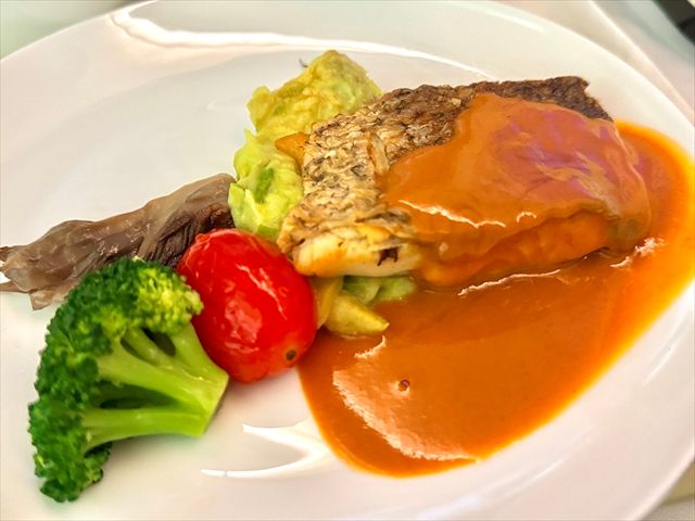 やさしいお味に温かいスープが五臓六腑に染みわたります。フォーって何度食べても飽きないなあと感じるのは筆者だけでしょうか? 機内食は数に限りがあるため、どうしてもフォーが食べたいなら早めにCAさんへオーダーするのがよさそうです(フォーがないと言われていた乗客もいました)。
