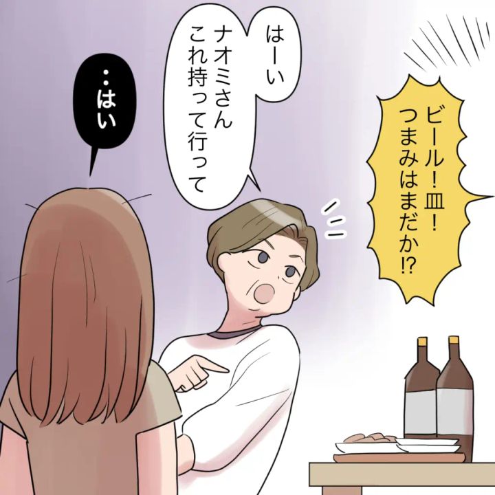 ですが、これだけの集中砲火を浴びても、疲れている暇はありません。居間から「ビール!皿!つまみはまだか!?」と呼ぶ声が飛んできます。義母は「はーい」と返事をすると、私に机の上にあるビールやおつまみを運ぶよう指示してきました。