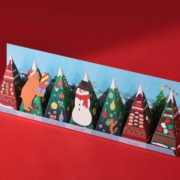 クリスマスモチーフのパッケージに、ダージリン・アップル・キャラメルの3種のティーバッグが7日分入っていています。クリスマスまで毎日の1杯でカウントダウンできる仕様になっています。味のバリエーションと遊び心が合わさったユニークな商品です。